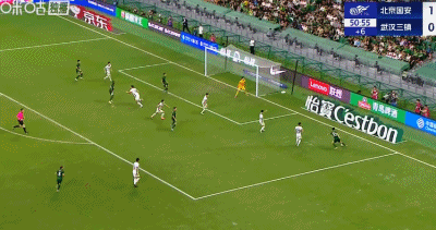 第53分钟,国安前场任意球,古加挑传助攻林良铭破门,国安3-0