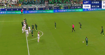 第53分钟,国安前场任意球,古加挑传助攻林良铭破门,国安3-0